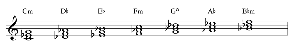 1. My favourite mode/scale is the dominant phrygian. It’s the same as this with a majored third. What I like to do is playing the majored third when playing the 1st degree chord, hence C major, but then minoring it when playing all other degrees. There’s a beautiful major/minor contradiction. Think Radiohead’s Pyramid Song!