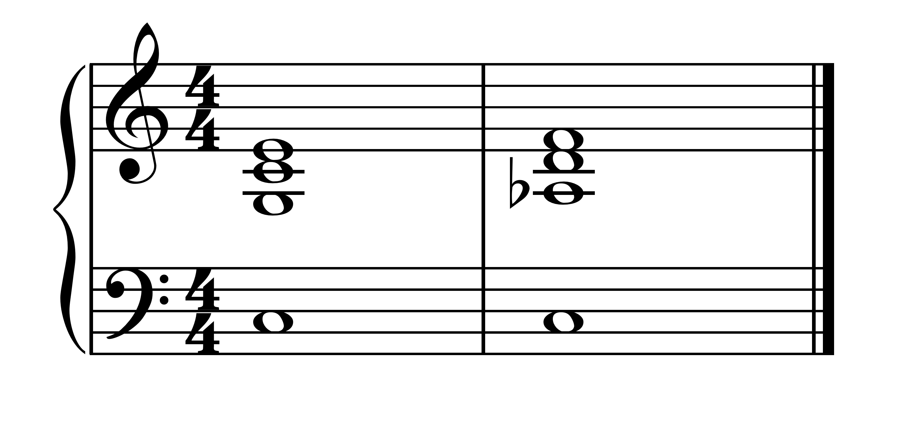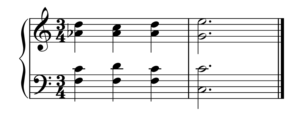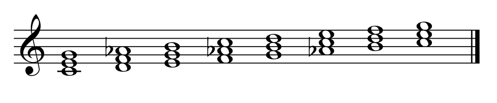 The most significant change from the major scale triads is the chord IV is now chord iv – yep, it’s minor. [And along with that we have a diminished ii and an augmented VI.] This minor chord ivand diminished chord ii are what we need to make one of the most used cadences of the 20th century:
